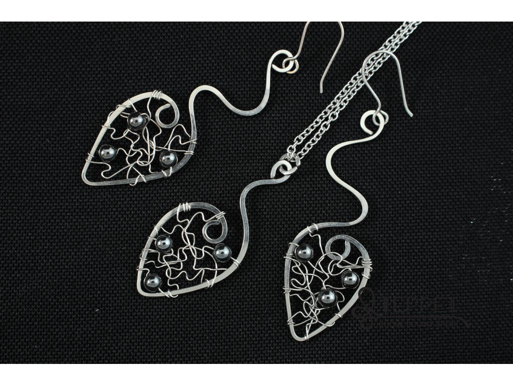 Šperk dokáže upoutat pozornost svou jemností. Šperk decentně doplňuje neutrální hematit.